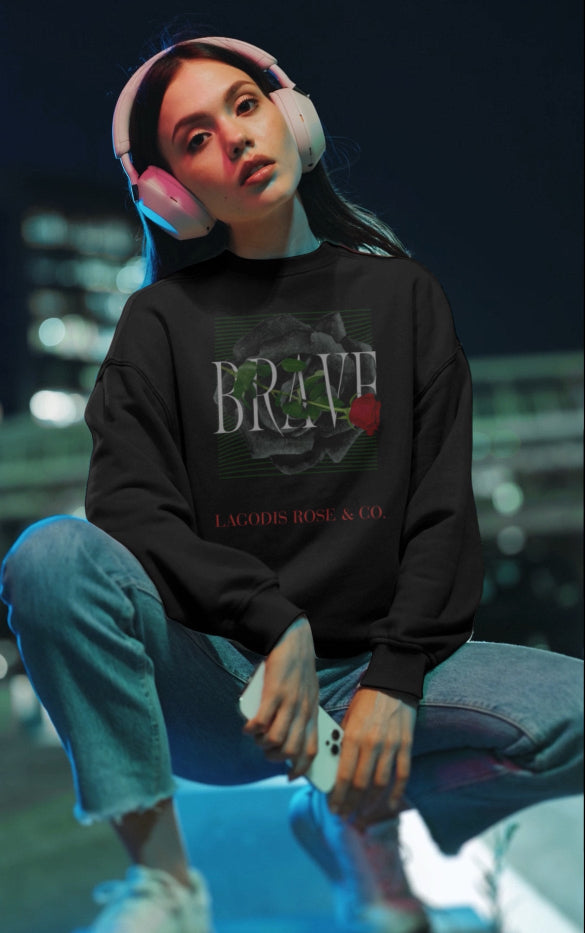 Brave Rose Graphic Crewneck Sweatshirt - Cozy Fleece, Inspirational Gift, Casual Wear, Perfect for Holidays